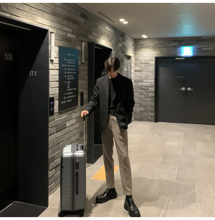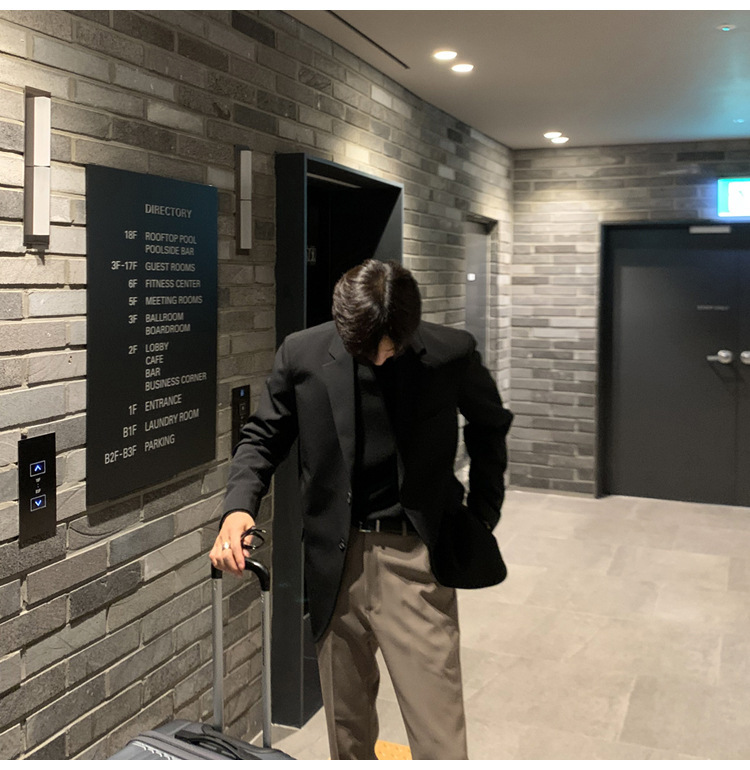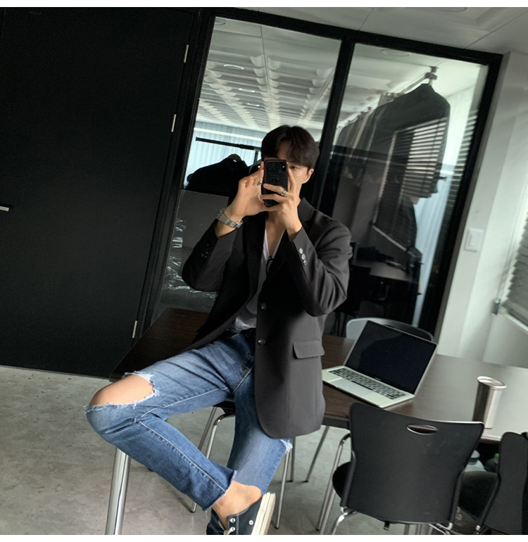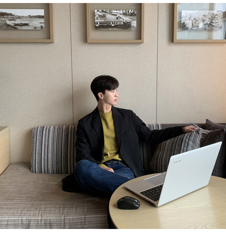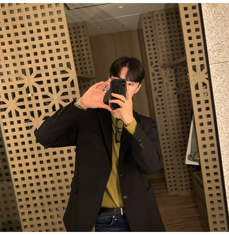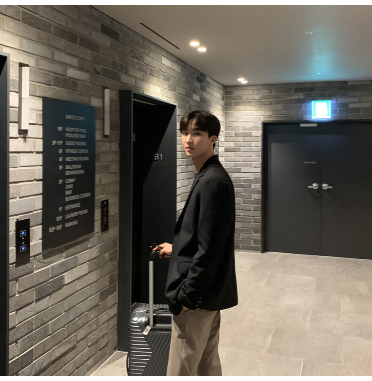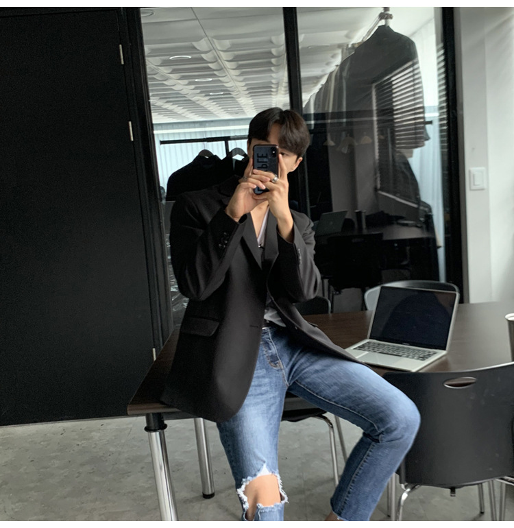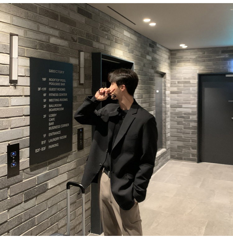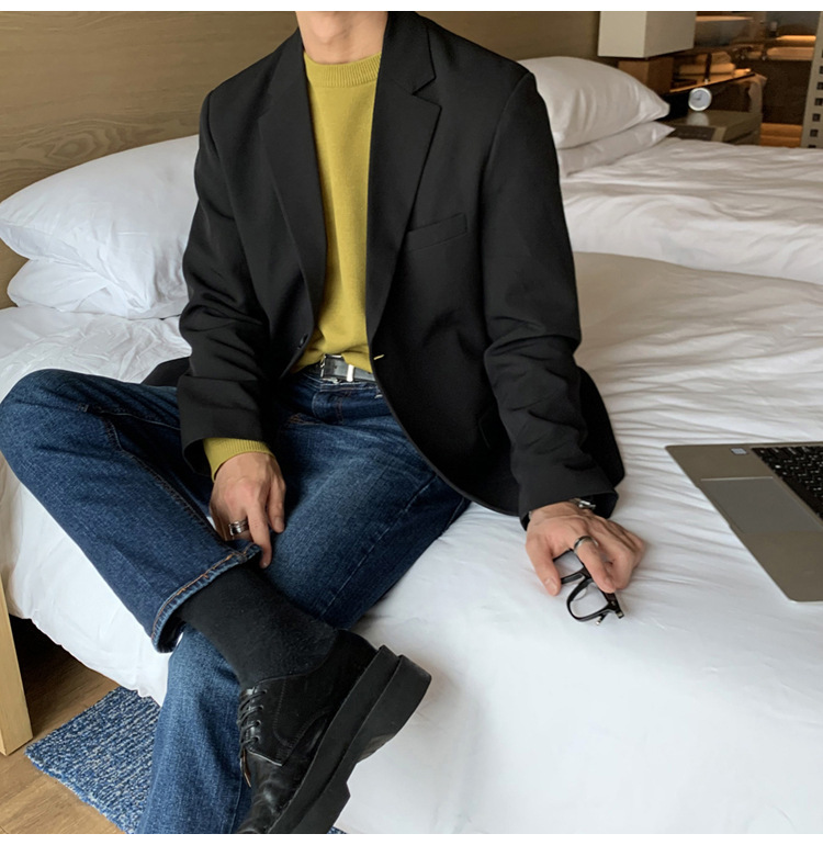 Men's Autumn Loose-Fit Black Single-Breasted Suit Jacket
